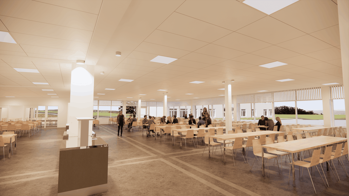 Den nya skolbyggnaden, konceptskolan, placeras i söder på tomten och ramar på så vis in skolgården tillsammans med de befintliga husen.