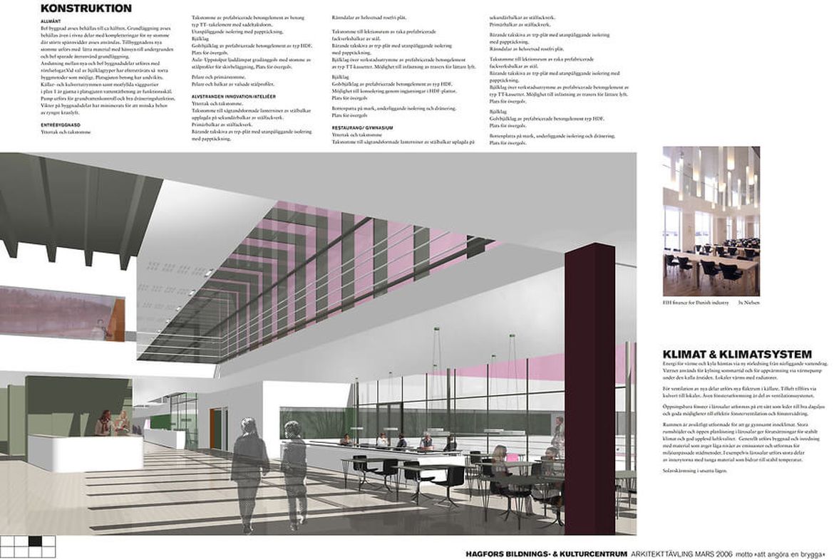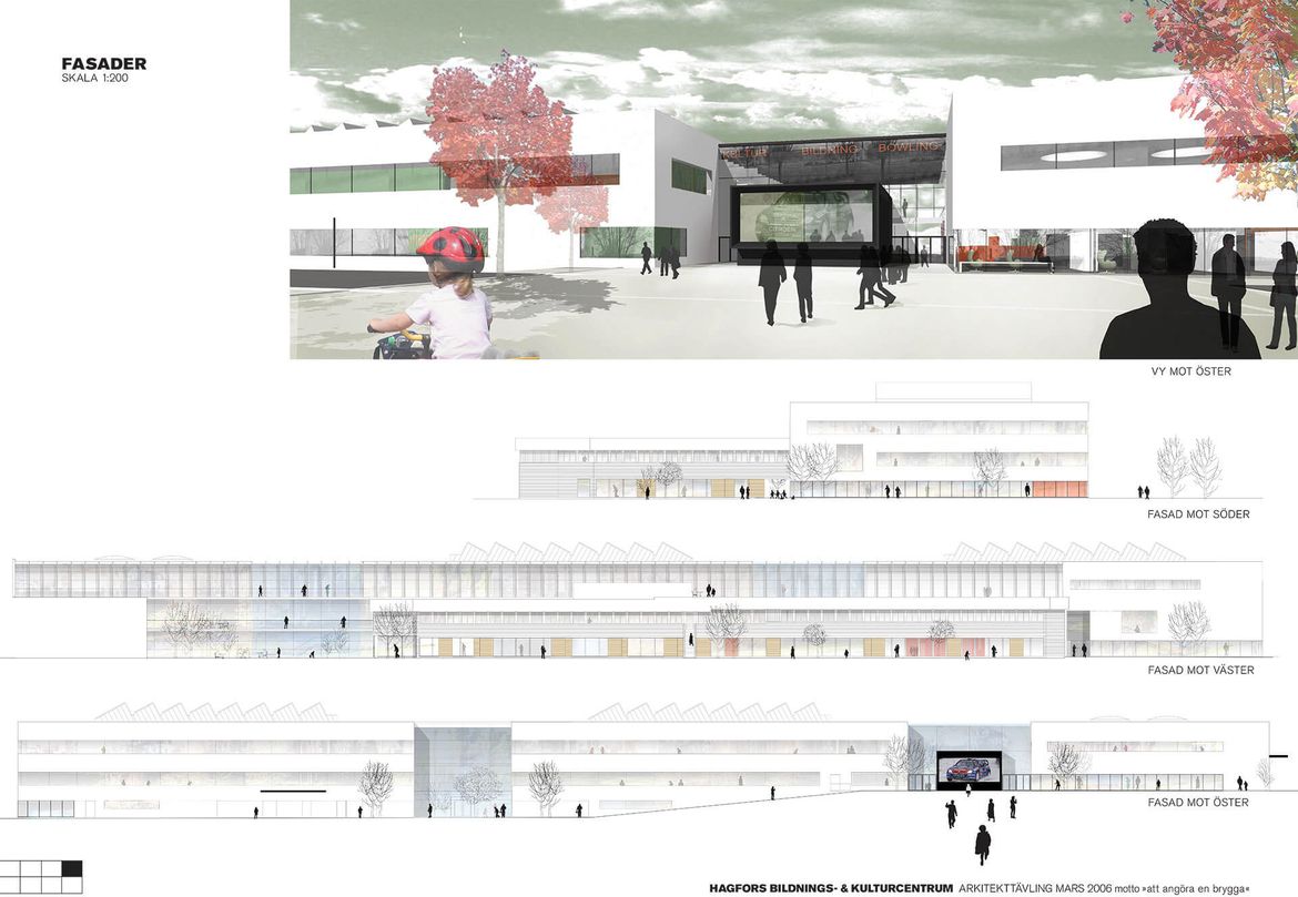 Älvstranden Hagfors - år 2005 deltog Stadion arkitekter i en inbjuden tävling för ett nytt kultur- och bildningscentrum i Hagfors. Det befintliga Älvstrandsgymnasiet skulle byggas om och till för att anpassas till en ny pedagogik och för att samla kommunens hela skolverksamhet samordnat med bibliotek, bad och sporthall.