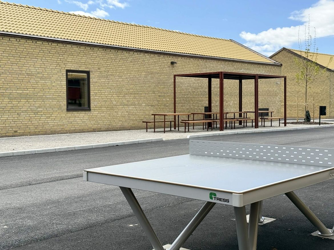Initialt i fas 1 tittade vi därför just på en sådan tillbyggnad, men kom ganska snart fram till att istället bryta ut matsal och kök till en friliggande nybyggnad. På det sättet skulle man undvika större ingrepp i den befintliga och bevaransvärda aulabyggnaden och istället anknyta till den övriga skolanläggningens struktur med friliggande byggnader. En naturlig addering till raden av befintliga huskroppar som förlänger stråket med gårdsbildningar utmed skolanläggningen. Matsalsbyggnad med tillhörande storkök placerades på det sättet som en fristående byggnad i parken väster om Petrus Magniskolan, delvis på den parkering som fanns på baksidan av aulabyggnaden. Likt hus A och B skapar den nya byggnaden en rygg mot Borgmästargatan där också funktioner som