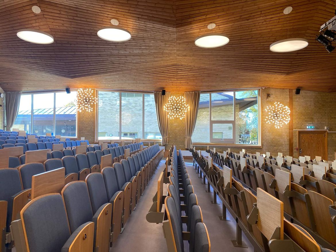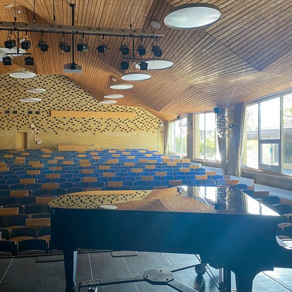 En trappa/gradäng ersatte kökets gamla lastkaj och blev en plats för samling intill den nya matsalen. Aulans scen tillgänglighetanpassades genom en svagt lutande ramp från aulans entré och nya trappsteg tillkom ner till de nedre sittplatserna.